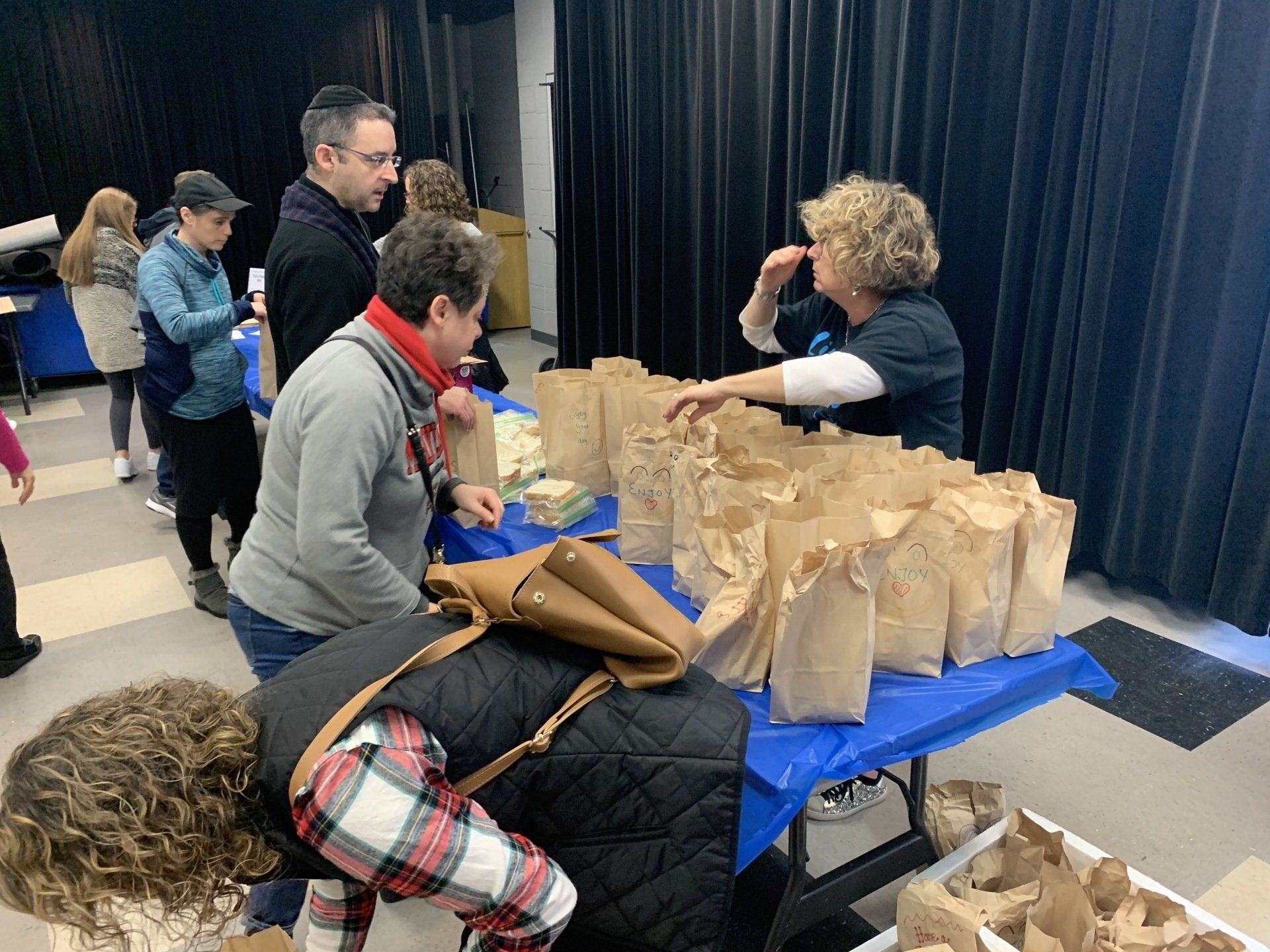 Mitzvah Day - volunteers prepare meal bags for Weinberg House